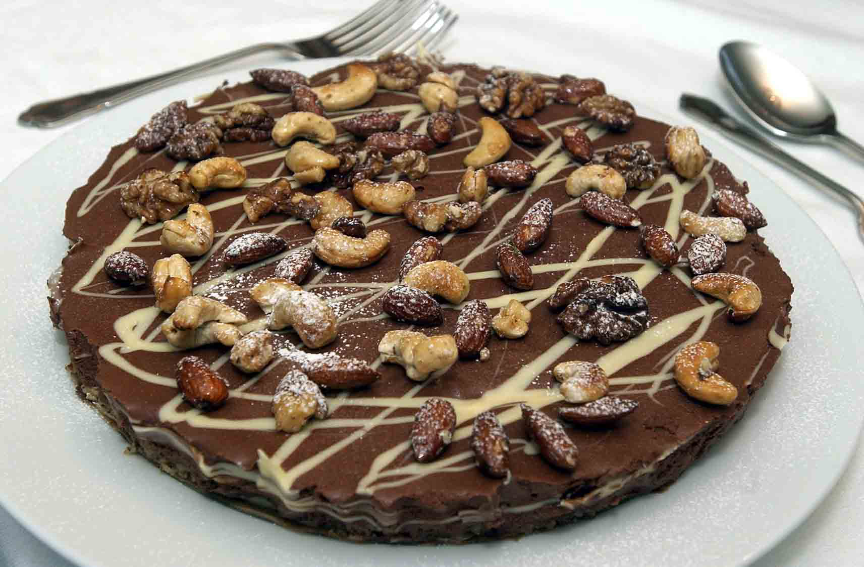 9. Carefully place the nut mix onto the torte then return to the fridge Allowing it 12 hours to set properly before serving.