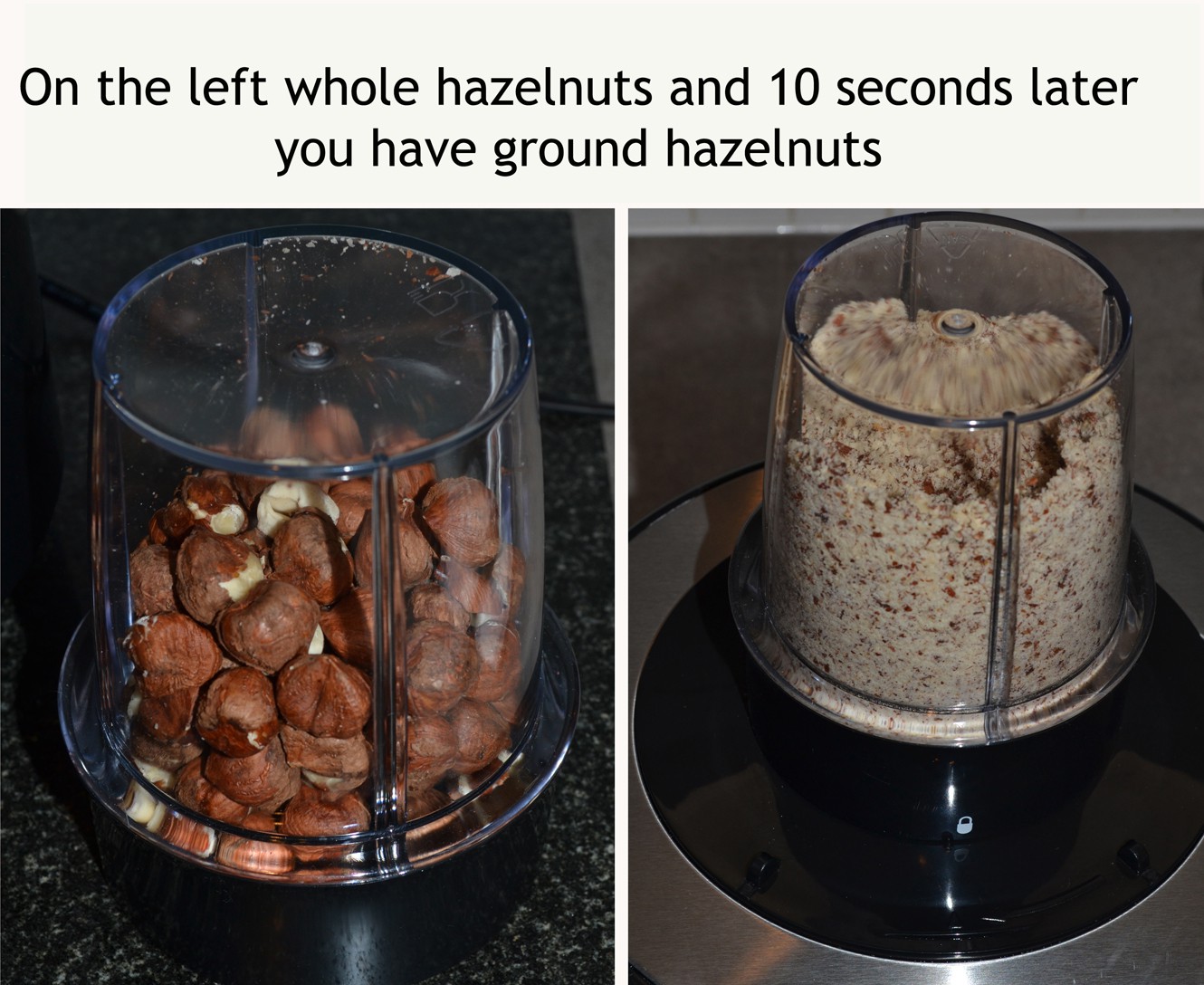 The grinder (or mill function as the instruction book call it) can grind coffee beans, herbs and nuts easily and quickly. I ground up 100 grams of whole hazelnuts in just under 10 seconds (see photos).