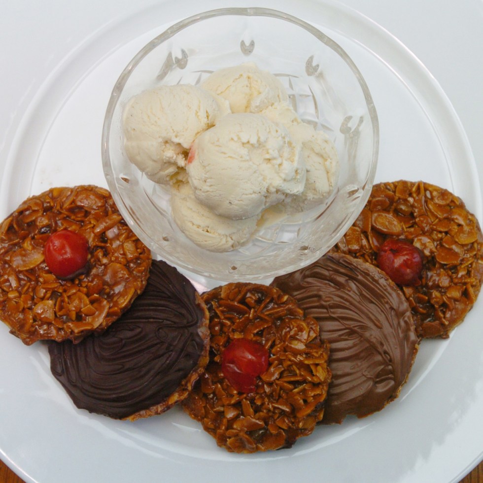Clotted Cream Ice Cream with Florentine Cookies