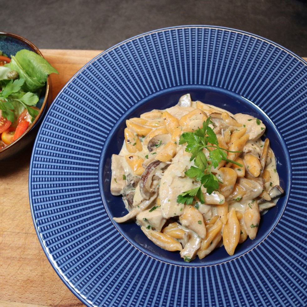 Sweet Potato Pasta with Wild Mushrooms & Chicken