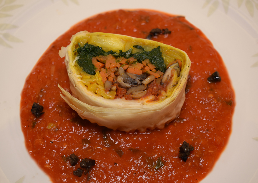 Vegetable Strudel with Tomato and Red Pepper Sauce